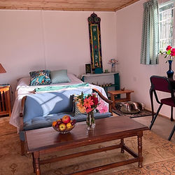 This spacious one-roomed, self-contained cabin is available to book for solo retreats. It has spectacular views of the Susurumba and Manyoli mountains.